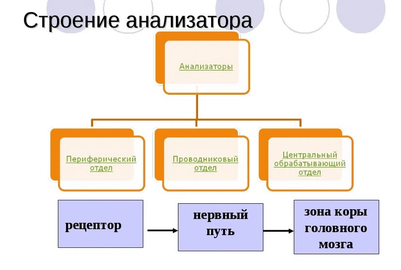 Анализаторы являются частью нервной системы, отвечают за слух, зрение, обоняние, осязание и вкус.