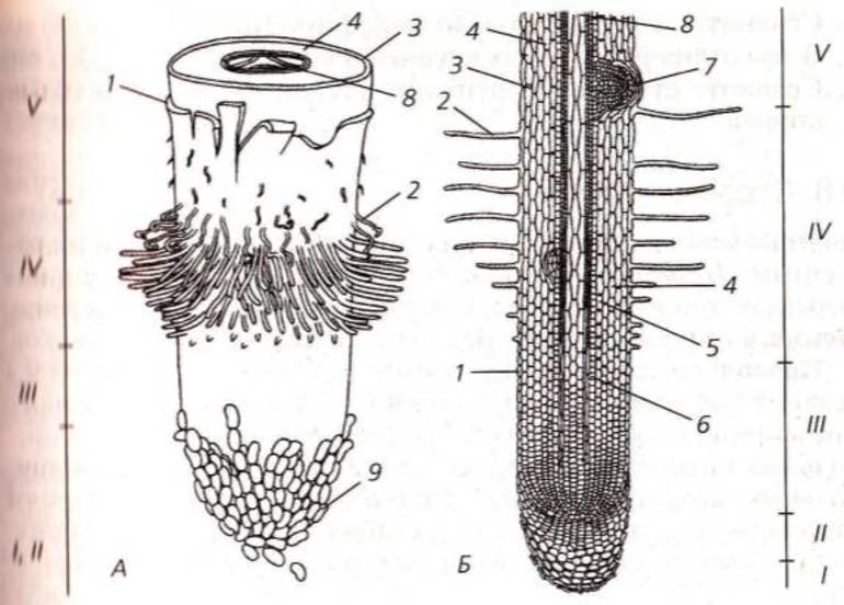 Эти зоны можно легко увидеть на главных и придаточных отростках. Только у трёх отделов граница немного размыта.
