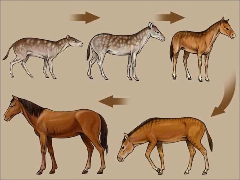 - Филетическая. В одной систематической группе эволюционные изменения приводят к полному вырождению прежней группы и появлению новой. По такому принципу, например, проходило эволюционное формирование лошади.