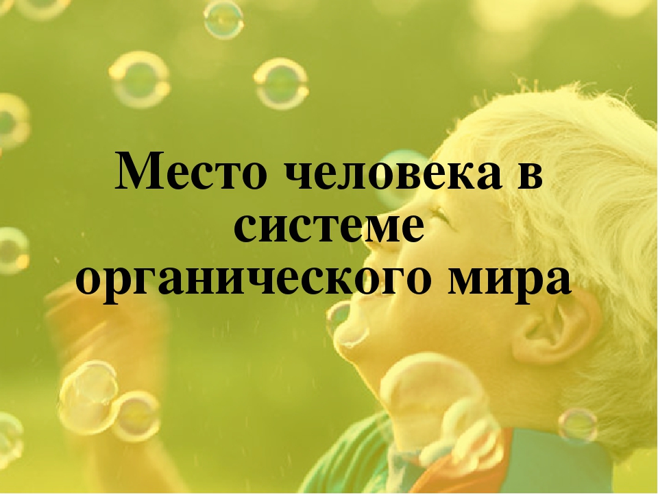 Человек является биосоциальным существом, так как развивается на основе природы и обязательно в обществе. Без себе подобных он может погибнуть или начать процесс деградации. Что касается места человека в системе органического мира, то оно находится выше других видов живых организмов, даёт право индивиду управлять природными ресурсами и на их основе развивать свой материальный мир.