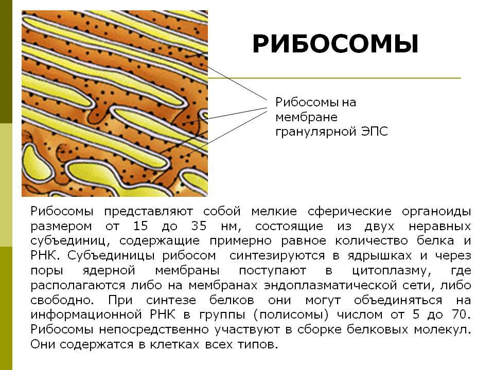 Во время рассмотрения клетки с помощью электронных микрофотографий будут заметны частицы небольших размеров, размещенных непосредственно в цитоплазме растительных и животных клеток. Это и есть рибосомы, название которых составное. Первая часть термина означает «рибонуклеиновая кислота», вторая («сома») — тело, если переводить с греческого языка.