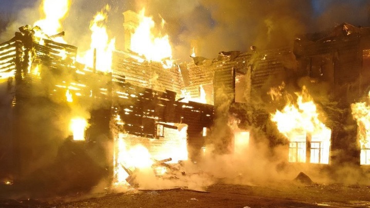 "К моменту прибытия пожарных двухэтажное деревянное здание было полностью охвачено пламенем", – говорится в сообщении.