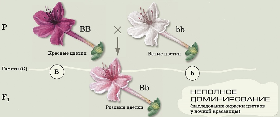 Если белоцветковый горох скрещивался с сортом, у которого были ярко выраженные пурпурные цветки, то всё потомство имело пурпурные цветки. Такие же результаты получали исследователи, которые работали до Грегора Менделя. Об этом в биологии свидетельствуют первые таблицы скрещиваний.