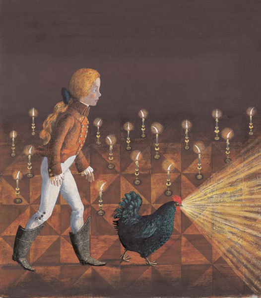 — Если ты меня не боишься, — продолжала курица, — так поди за мною: я тебе покажу что-нибудь хорошенькое. Одевайся скорее!»