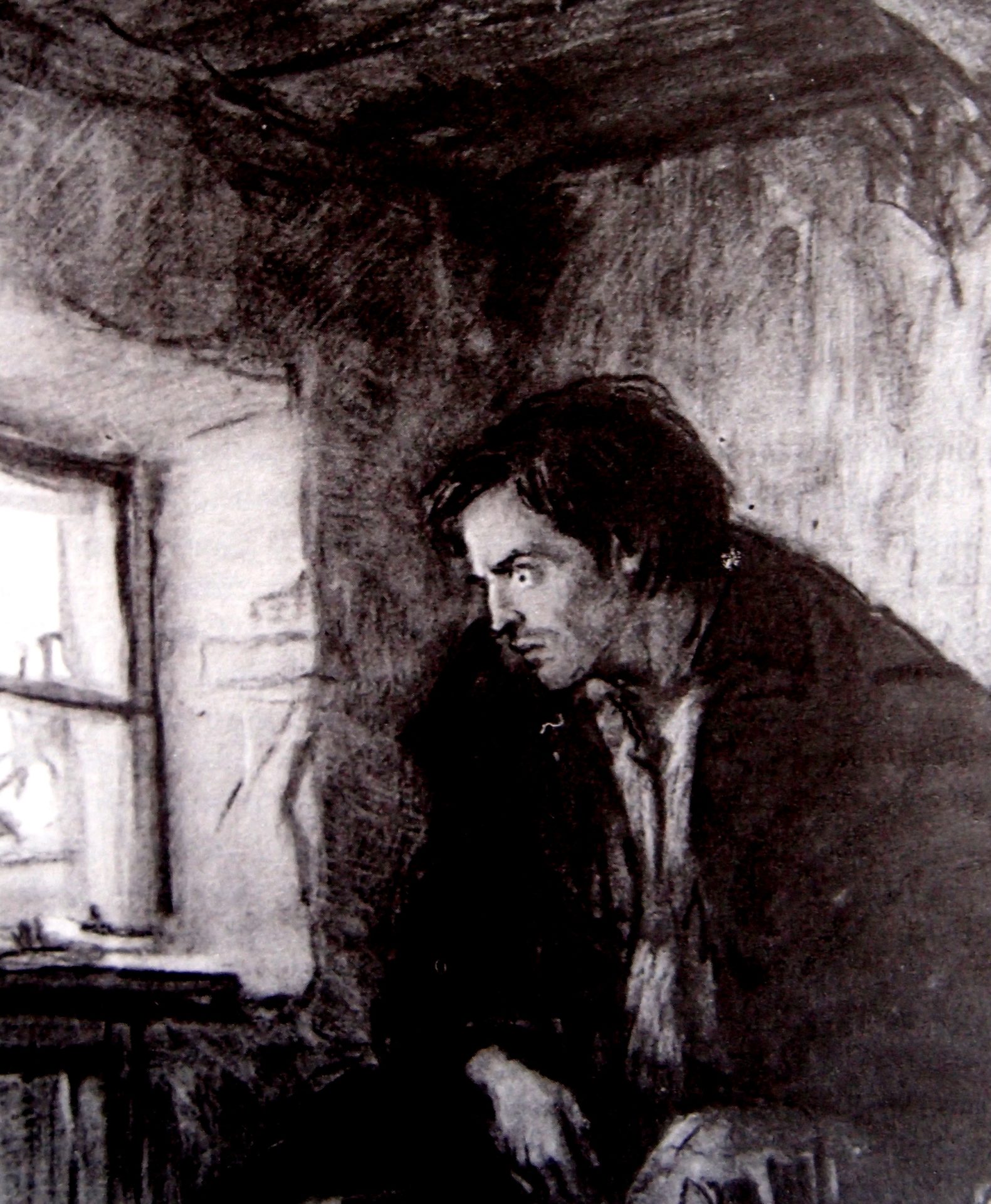 «Он до того углубился в себя и уединился от всех, что боялся даже всякой встречи, не только встречи с хозяйкой. Он был задавлен бедностью; но даже стесненное положение перестало в последнее время тяготить его. Насущными делами своими он совсем перестал и не хотел заниматься»