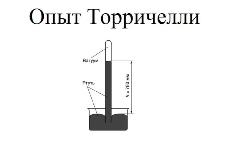 Эванджелиста Торричелли вошел в историю как первый ученый, который получил математическое выражение для атмосферного давления. Измерения в опыте Торричелли привели к следующим результатам: