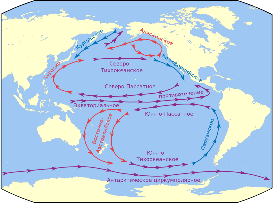 Тихий океан обладает огромной и сложной системой разветвлённых морских течений, которые оказывают важнейшее влияние на состояние климата в восточной части Евразии. Так, одним из главных погодных факторов являются пассатные течения, благодаря которым на Дальнем Востоке сохраняются его исконные природные условия. Самым крупным из них являются северные пассаты, начинающиеся у берегов Филиппин. Одно течение движется к Зондским островам, другое поворачивает в южные воды, третье же стремится на север к прибрежным водам Тайваня.