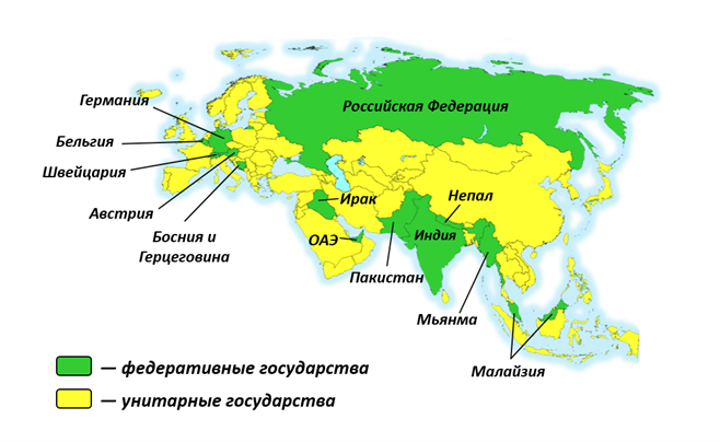 Федерация — государство, поделенное на несколько отдельных административно-территориальных единиц, обладающих юридической и политической самостоятельностью. Эта форма управления встречается не только в Северной Америке, Канаде, России. Действует она и в некоторых европейских державах. Например, известны такие федеративные страны зарубежной Европы, как Австрия или Бельгия.
