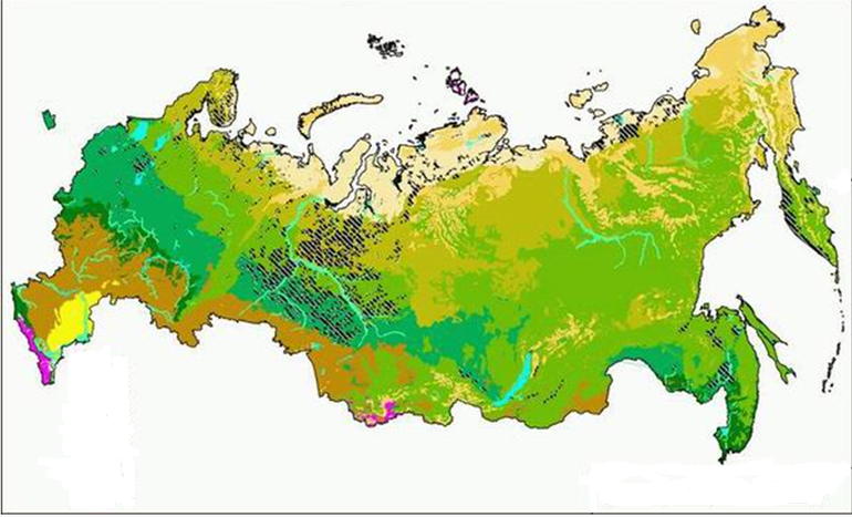 Россия занимает почти половину огромной Евразии. С северной части до юга протяженность страны около 4500 км. С запада на восток — примерно 10 000 км. В природные зоны России входят лесотундра, тайга, тундра, широколиственные и смешанные леса, пустыни и полупустыни, сткпи и лесостепи, арктические территории. Для каждой из области характерны свои климатические условия, растительный и животный мир.