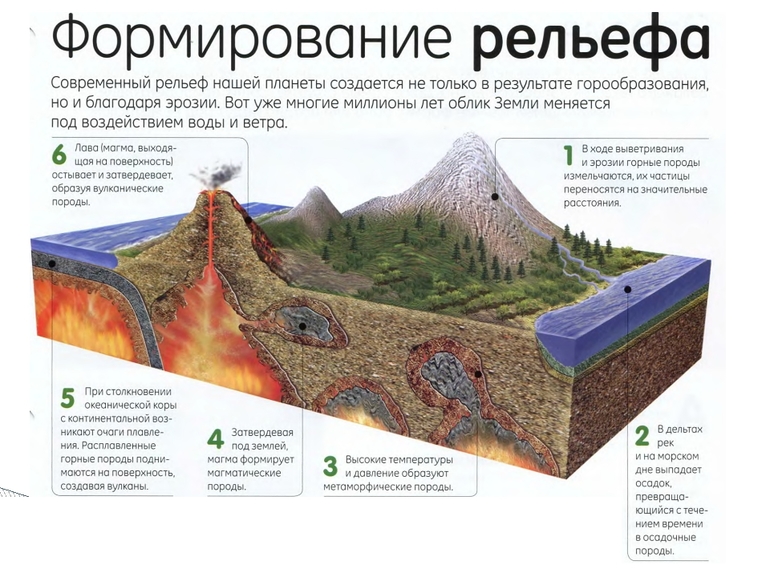 Есть мнение, что современный облик планеты — это результат исключительно движения тектонических структур в геологическом далеком прошлом. На самом деле, о развитии форм рельефа на географии в 8 классе можно узнать много необычных фактов. Даже в самых устойчивых участках земной коры до сих пор происходят изменения. Одни вызваны внешними факторами (разломами платформ), а другие спровоцированы внешними условиями (климат, течение рек, ледники).