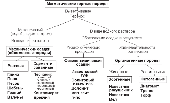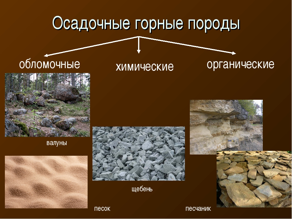 Перечисленные группы обширны. Каждая включает в себя очень разные осадочные горные породы, список которых велик, поэтому внутри них происходит дальнейшее деление на подвиды.