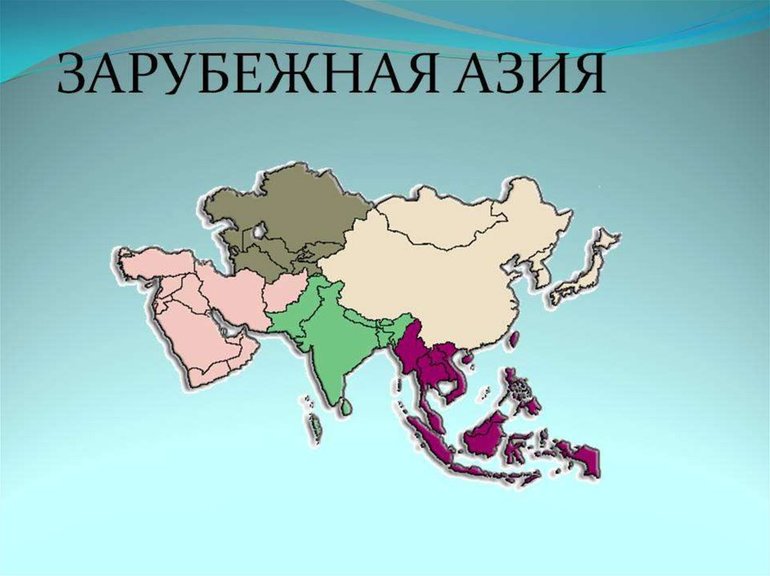 К странам Зарубежной Азии относятся государства, не входящие в состав Российской Федерации. Саму Азию по расположению делят на переднюю (западную), центральную (среднюю), Южную, Восточную, Юго-Восточную.