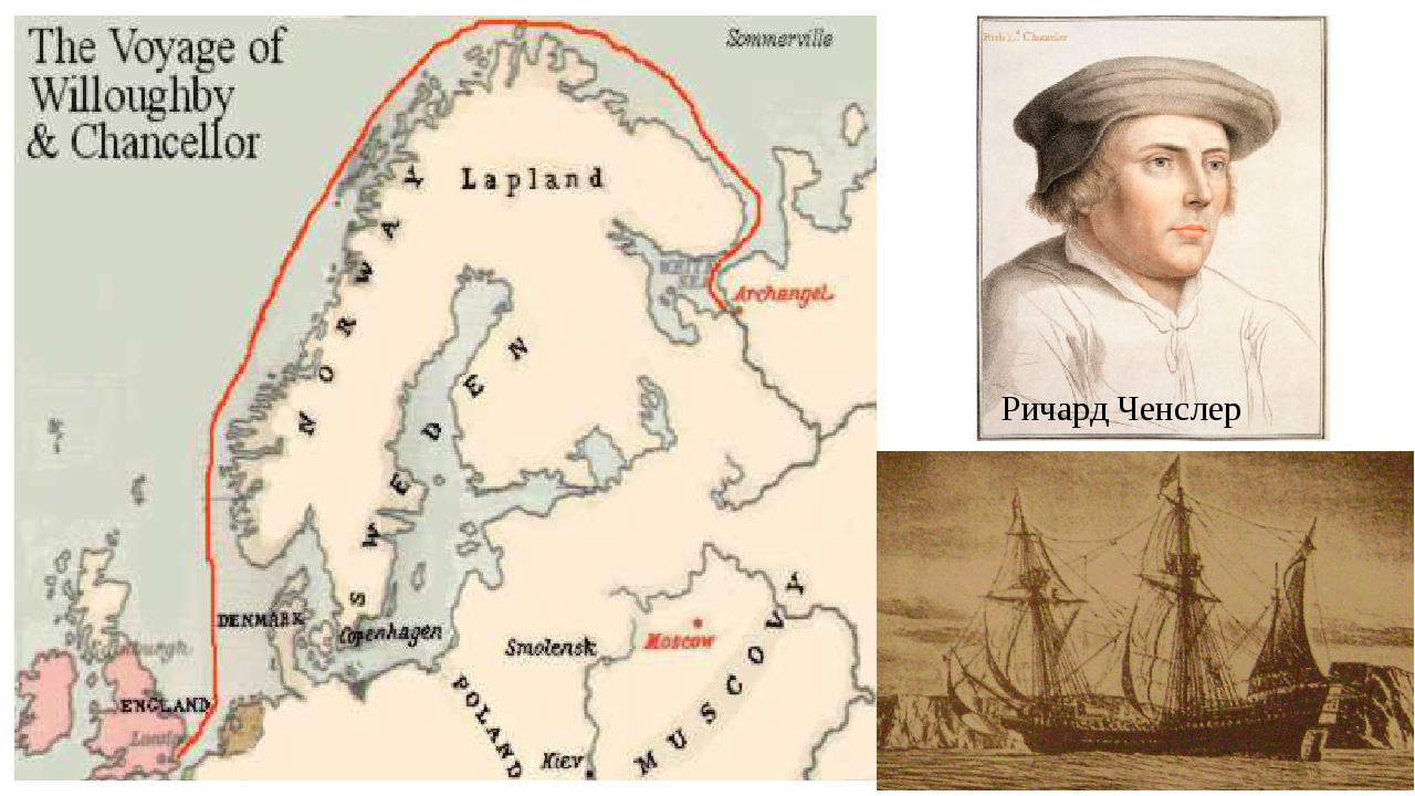 Помимо южного пути, европейцы искали и северный. В России уже существовали идеи насчёт этого, но первым попытал удачу Ричард Ченслер. Он смог обнаружить острова, которые получили название Земля Уиллоби. Итогом же путешествия Ченслера стало установление контактов с московским двором. Русские мореплаватели сделали свою попытку пройти северным путём, но сделать это не сумели, зато открыли многие северные острова континента: Новую Землю, архипелаг Земля Франца-Иосифа и многие другие.
