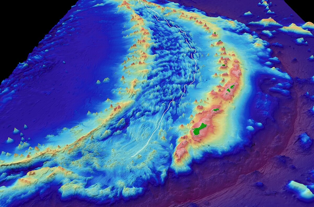 Марианская впадина находится под охраной США. Длина глубочайшего в мире желоба приблизительно равна 2550 км, ширина — 69 км. Самой углубленной под воду точкой считается «Бездна Челленджера» или «Утроба Геи».