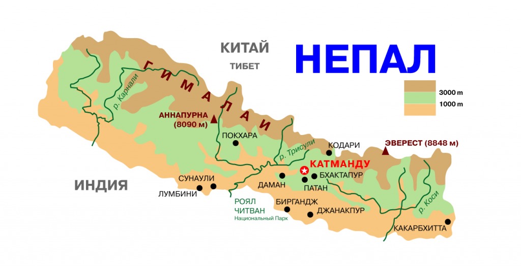 Ширина гряды Гималаев — 350 км, они простираются на 2400 км и охватывают площадь в 650 тыс. кв. км. В среднем гималайские пики составляют 6 тыс. метров. Из-за постоянно увенчанных снегом вершин Гималаи еще называют «снежными горами» или «обителью снегов». В Гималаях находится самая высокая точка Евразии и всего мира — Эверест. Ее еще называют Джомолунгмой, что на тибетском языке означает «Божественная мать». Возвышаясь на 8848 метров над уровнем моря, Эверест является важнейшей альпинисткой целью.