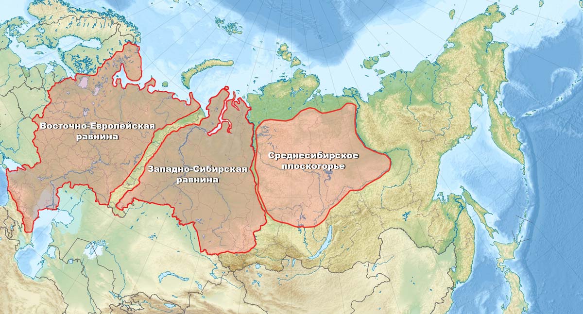 - Восточно-Европейская (Русская) и Западно-Сибирская равнина;