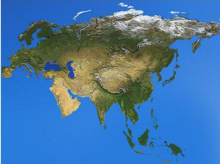 Одну четвёртую часть поверхности земного шара занимают острова и континенты. Крупнейший из шести материков располагается сразу в двух частях света — Азии и Европе, а значительная его часть находится в Северном полушарии. Общая площадь Евразии имеет огромные масштабы, составляющие около 40% всей существующей на планете суши.