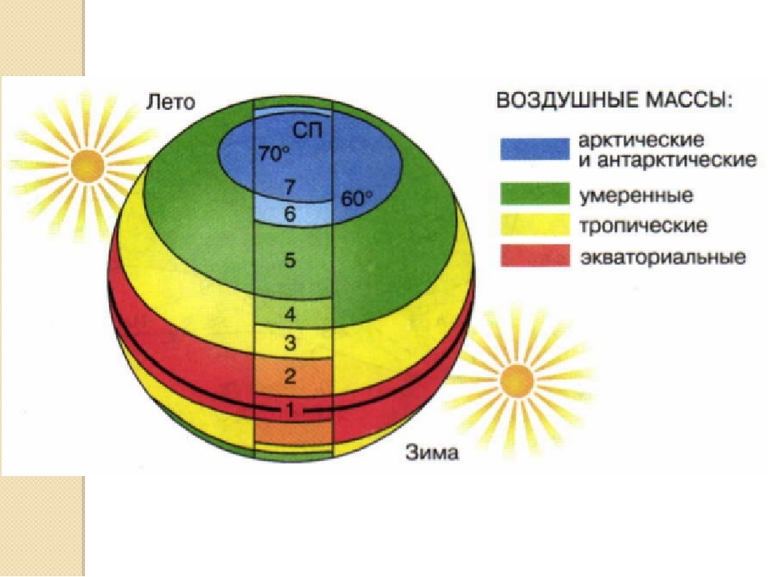 - Умеренные. Формируются в средних широтах. В зимнее время воздух сухой и холодный, а в летнее — жаркий и влажный.