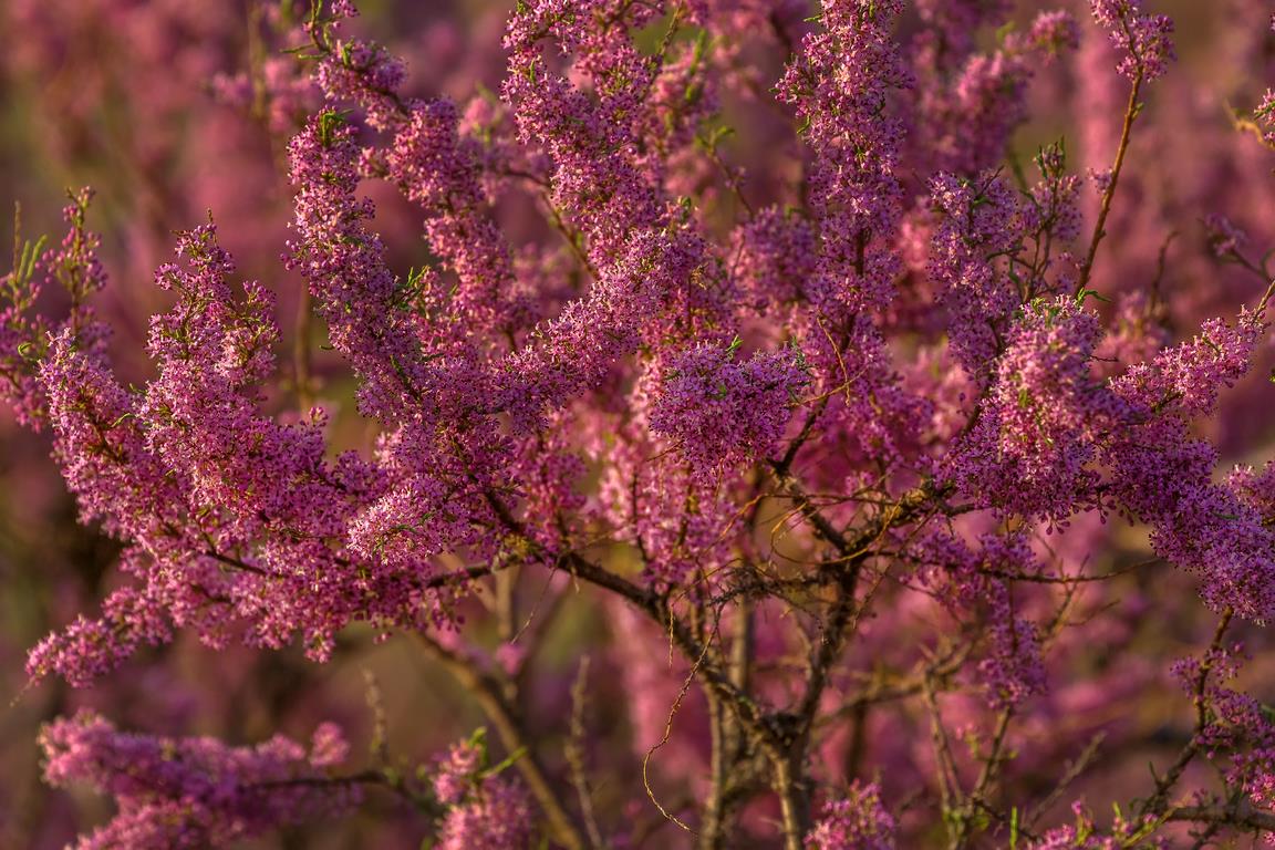 - Гребенщик или тамариск. Вечнозеленый вьющийся кустарник высотой 3—5 метров, произрастающий на засоленных участках, по краям такыров и барханов. Встречается также в западной части пустыни и на побережье океана. Главной особенностью является устойчивость к холоду и светолюбивость, даже небольшая тень может вызвать гибель растения. В период цветения выбрасывает светло-розовые лепестки, украшающие однообразный ландшафт.