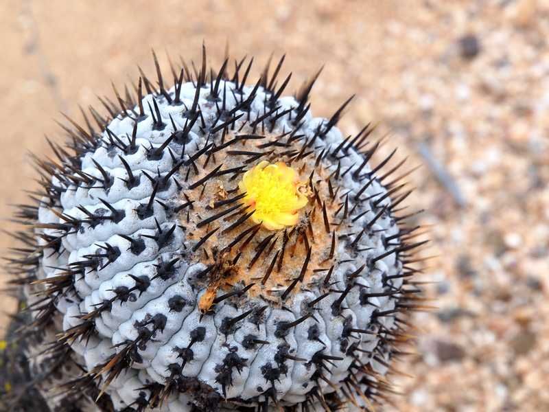 - Копьяпоа — округло-цилиндрический кактус, произрастающий вдоль побережья. Выпускает желтые или густо-зеленые бутоны на ясно выраженных ребрах толстого стебля. Растет по одному или в сообществах. Как и большинство подобных видов, влагу поглощает из туманов.