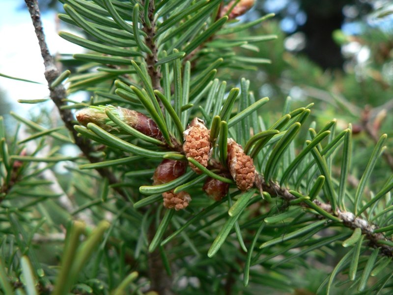 - Дугласовая пихта. Представляет высокую ель, преимущественно произрастающую на западе Северной Америки. Хорошо чувствует себя на влажных и сухих грунтах. В большом количестве присутствует на прибрежных и горных склона высотой до 3,5 км.