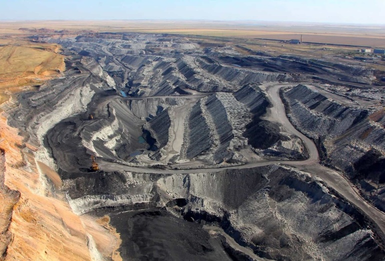- Способ добычи применяется по большей части открытый, так как глубина залегания невелика, на крупных площадях угленосные пласты имеют мощность от 15 до 90 м. Имеется 58 шахт, 38 карьеров и разрезов, 3 гидрошахты.
