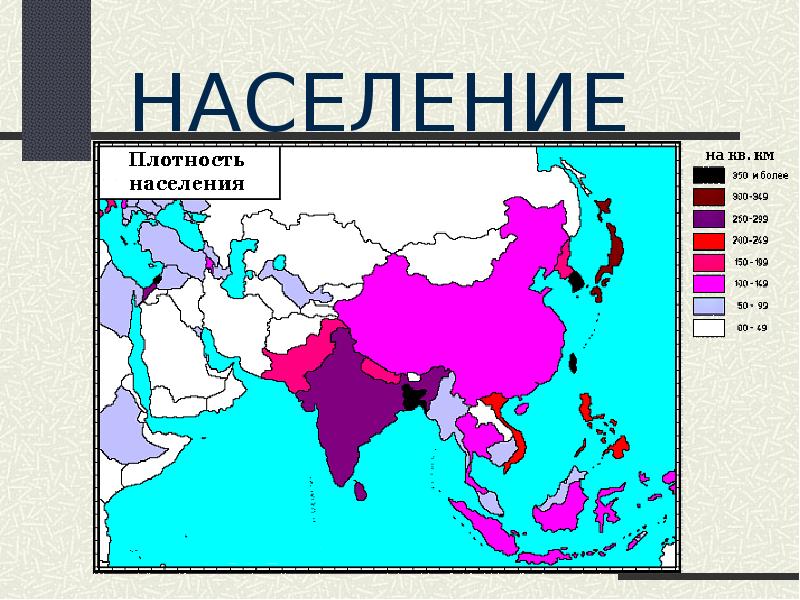 Численность населения зарубежной Азии достигла к 2020 году более 4,6 миллиарда человек. В этом и заключается одна из серьезных проблем региона. Во многих странах ежегодный естественный прирост населения превышает 2%. Контролировать ситуацию достаточно сложно, поэтому в Японии и Китае регулирование этого вопроса осуществляется на государственном уровне.