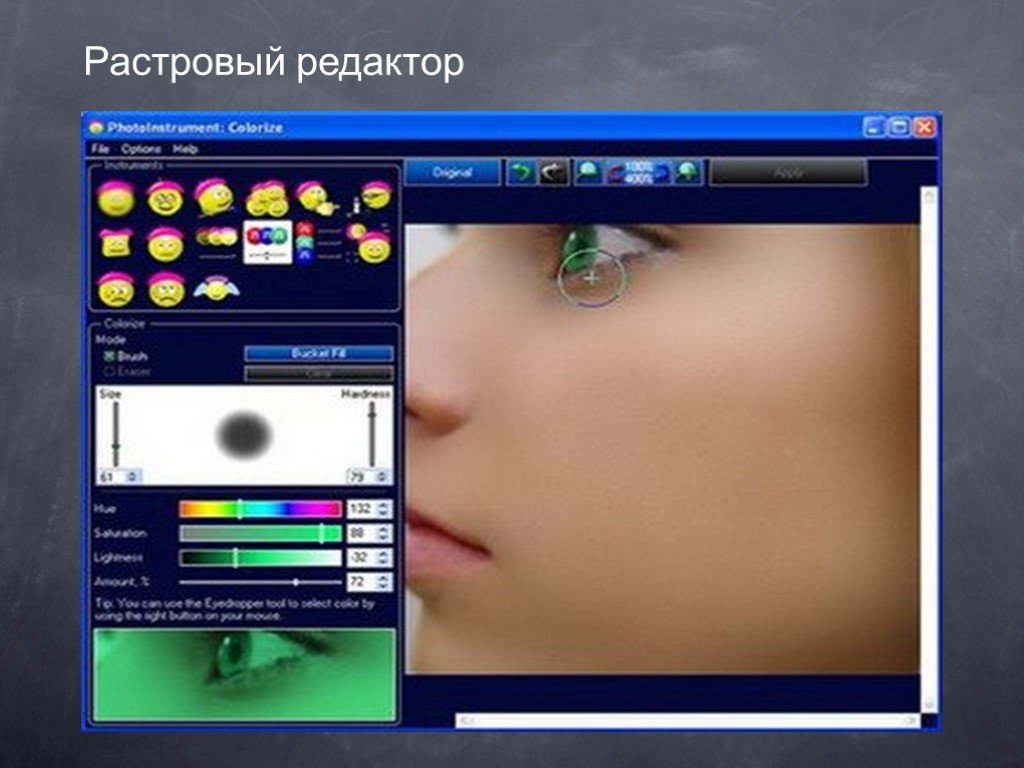 Изучаемый в первую очередь Paint предназначен для растрового формата. В эту же категорию попадают GIMP и Photoshop — для создания изображений они используют матрицы точек. Современные программы пригодны как для обработки фотографий, так и для рисования, обеспечивают возможность экспорта в форматы PNG, JPG и другие. GIMP работает более чем с 30 файловыми разрешениями, так как имеет в функционале маски и фильтры, режим смешивания, поддерживает технологию слоёв. Удобный интерфейс редактора вмещает множество других инструментов: