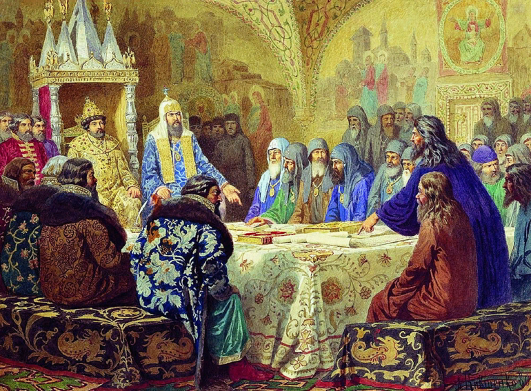 В правительстве стало модным выражение «Москва — это Третий Рим», которое было высказано еще в 15 веке старцем Филофеем. В истории много примеров. Например, по прошествии церковного раскола в 1054 году Константинополь стал главной духовной державой Православной церкви. Филофей считал, что после падения Византии столица России являлось местом истиной веры. Государю России в качестве доказательства такого положения Москвы было важно содействие церкви греческой. В итоге понадобилось привести церковную службу в неделимость с греческими правилами.