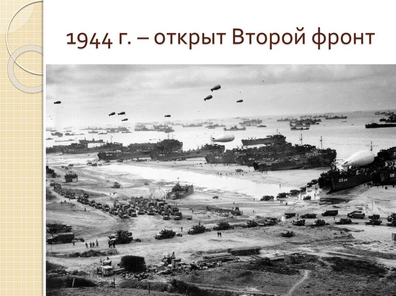 Положение во Второй мировой было совсем другим. Падение Франции и эвакуация из Дюнкерка в 1940 году означало, что англичане и американцы должны были воссоздать фронт в Западной Европе посредством десантного вторжения, прежде чем они смогут вступить в бой с основной частью немецких вооружённых сил.