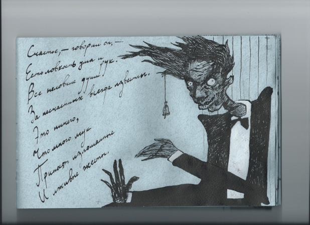 - Душевная болезнь. Герой мучается от своих мыслей. Он не может ни есть, ни спать, ни нормально существовать. Виной этому является чёрный образ, который омрачает последние светлые моменты в жизни поэта. Автор верит в искреннюю любовь, в творчество и счастье, но всё это давно перечеркнул приходящий к нему человек.
