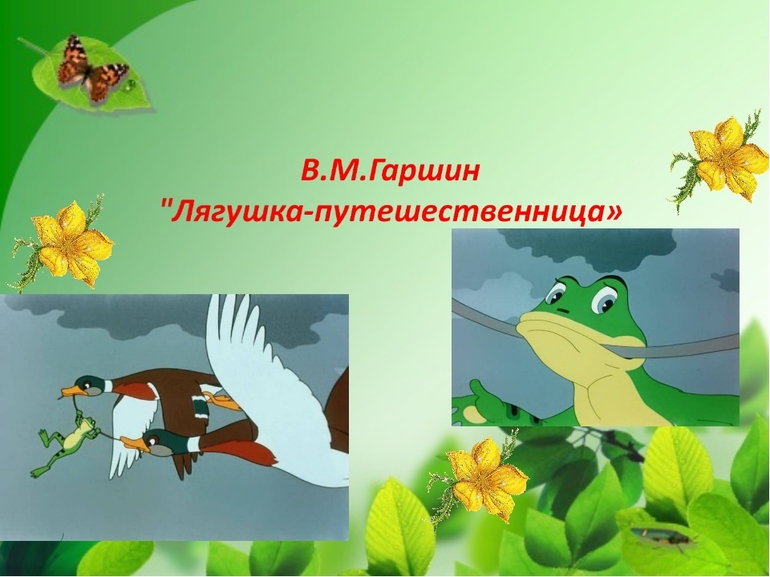 Изобретательной лягушке из-за собственного тщеславия не досталось желаемого — вот краткое содержание «Лягушки-путешественницы» для читательского дневника. Но автору нравится образ героини. Он повествует о лягушке с добрым сарказмом. Описывая болотную жительницу В. Гаршин использует следующие определения: пёстренькая и лакированная спинка, брюшко и лапки.