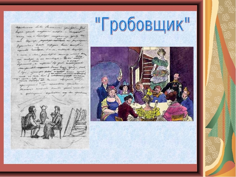История гробовщика учит читателей жить и зарабатывать честно. Автор призывает к тому, что ни в коем случае нельзя радоваться чужому горю. Чтобы донести эту мысль, Пушкин использовал следующие образы:
