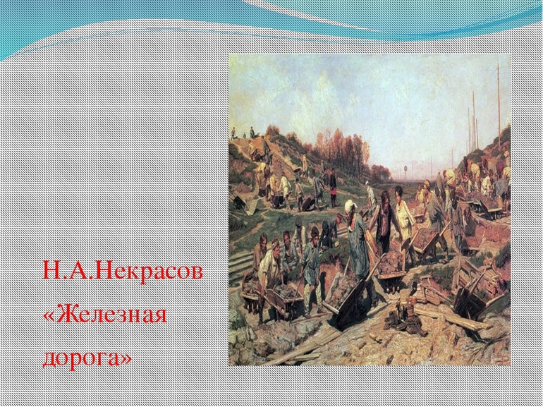«Железная дорога» Некрасова начинается с того, как мальчик Ваня интересуется у своего папы, кто возводил железнодорожные пути. Строгий генерал ответил, что это граф Петр Андреевич Клейнмихель. В разговор вмешался их попутчик, он возразил и предложил рассказать ребенку другую историю с подлинными строителями-железнодорожниками.