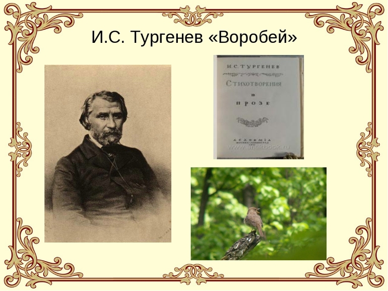 Недавно в классе по этому произведению писали сочинение с элементами изложения, составляли презентацию и план. Рассказ «Воробей» Тургенева мне понравился. Это добрая история с хорошим концом. Смысл произведения — беречь и любить родителей, ценить свою семью, заботиться о ней. Я брала хрестоматию с картинками, в ней прочитала помимо этого еще очень много других интересных произведений. Особенно советую прочитать «Воришка» Скребицкого, «Скворцы» Куприна, «Курица и ласточка» Толстого и короткие азербайджанские сказки.