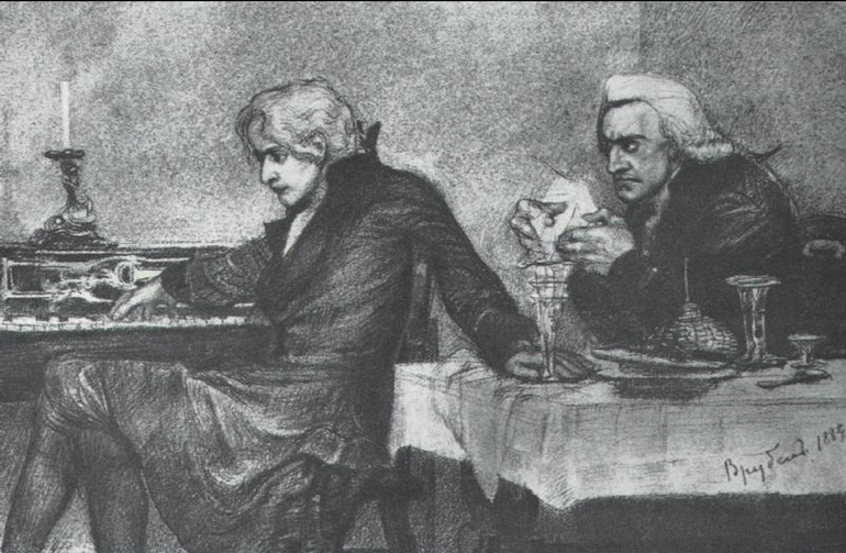«Моцарт и Сальери» — это короткое произведение, которое было создано в 1830 году. Пушкин работал над ним в плодотворный болдинский период. Оно входит в цикл «Маленькие трагедии», который составляет четыре «пьесы для чтения», как назвал их сам Пушкин. Уже в 1831 году сочинение напечатали в ежегодном альманахе «Северные цветы на 1832 год». В качестве основы Пушкин взял легенду о смерти великого австрийского композитора, в том числе самые абсурдные слухи о ней. Он ссылался, что узнал об этом из немецких журналов, однако каких именно — не называл.