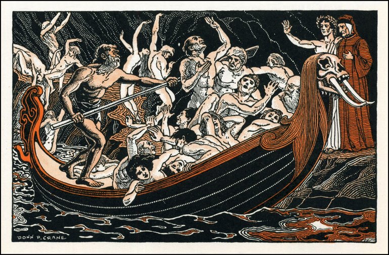 Пройдя дальше, Данте увидел, как Харон перевозил души людей на другой берег. Именно здесь он увидел много великих ученых, философов и поэтов. У вторых ворот сторожил демон Минос. Он был хозяином тех, кто предал свой разум.