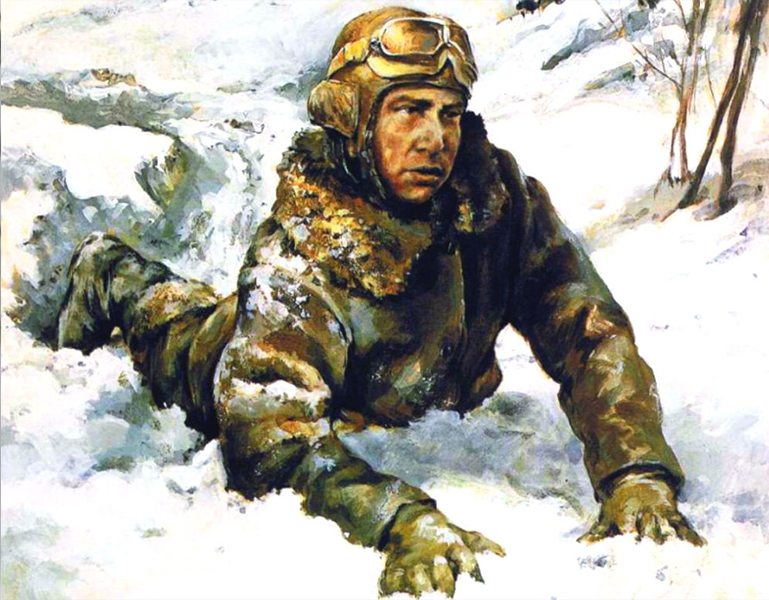 Попытавшись встать, он ощутил сильное головокружение и невыносимую боль в ногах. Летчик заметил место недавнего сражения и дорогу, ведущую в лес. В нескольких десятках километров проходила линия фронта.