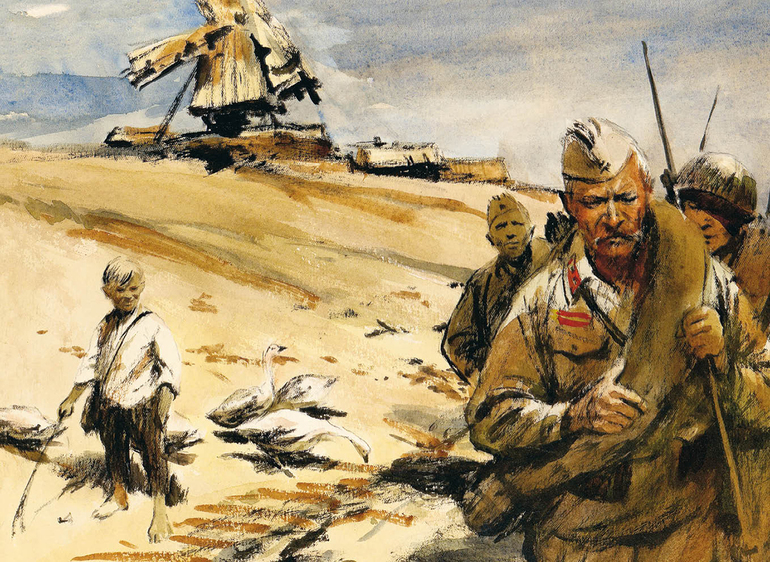К исходу войны он относился очень пессимистично, а его товарищ Лопахин, наоборот, верил, что советский народ победит, просто людей нужно как следует разозлить. После разговора друзья решили отправиться ближе к реке, чтобы поймать раков. Идею их не удалось воплотить в жизнь, поскольку полк подняли по тревоге. Командир отдал приказ держать оборону хутора до последнего.