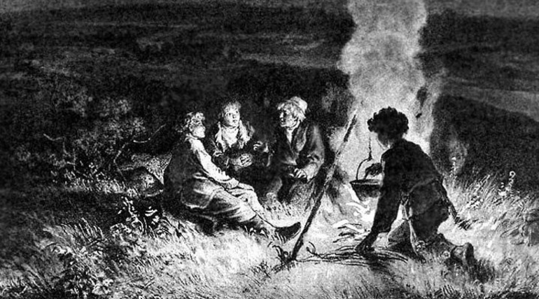 Увидев вдали огни, рассказчик подумал, что возле костра сидят гуртовщики. Но оказалось, что это были дети, которые отправились в ночную смену стеречь табун лошадей. Автор познакомился с ребятами, поговорил, и вскоре лег спать. Однако на самом деле он не уснул, а слушал разговор парнишек, которые рассказывали былички.