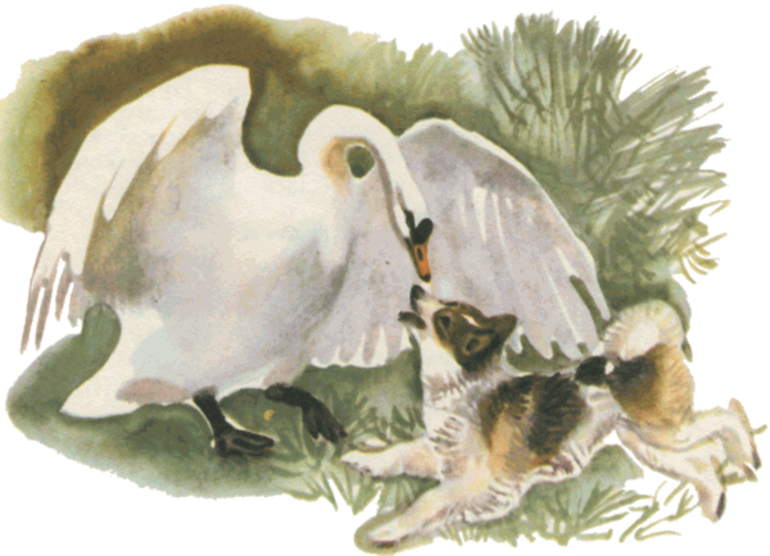 - Приемыш — небольшой лебедь, которого человек спас от неминуемой гибели;