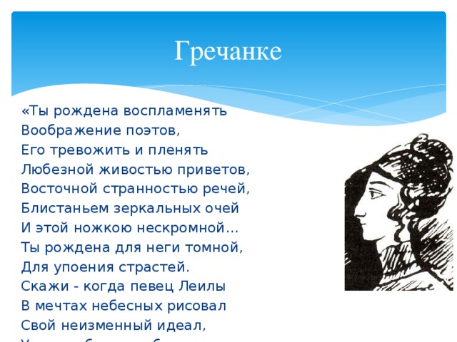 - «Гречанке» и, возможно, «Иностранке» к Калипсо Полихрони. Их романтическая связь была короткой, но нашла отражение в душе и творчестве поэта.