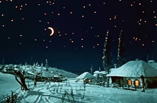 Гоголь написал свою повесть «Ночь перед Рождеством» в 1832 году, она основана на множестве народных поверий. Одно из них является основой произведения. Согласно сюжету, люди верили, что накануне праздника Чёрт способен украсть месяц с неба, и лукавый не преминул этим воспользоваться. Это и стало началом приключений главных героев «Ночи перед Рождеством». Характеристика некоторых персонажей довольно забавная, события происходят на фоне безудержного веселья.