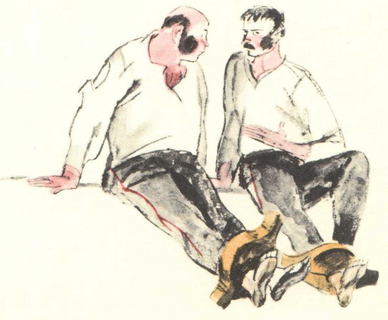 Такое бесстрашие вызывает невольное восхищение у последнего, татарин начинает звать Жилина «джигит урус», обещает все выполнить, но колодки разрешает снимать только на ночь из опасения, что пленные убегут.