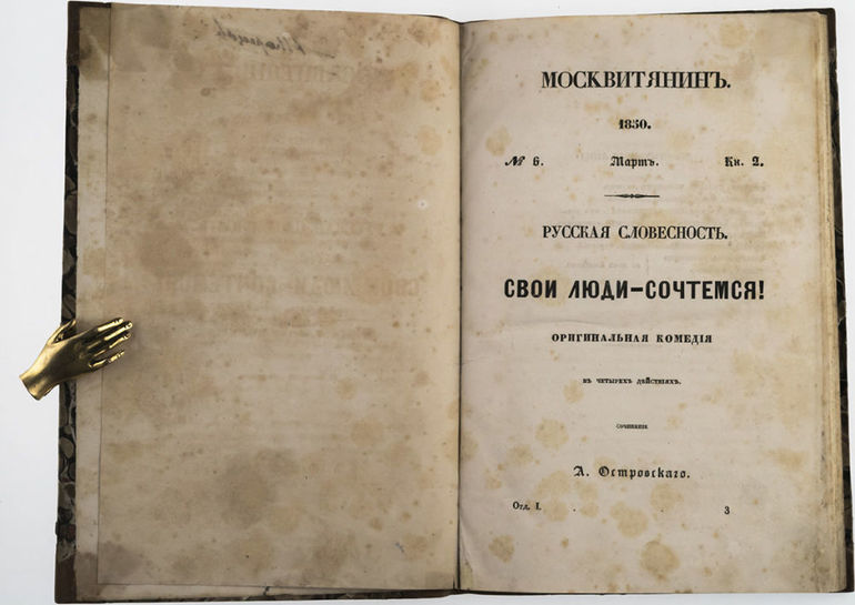 «Свои люди — сочтемся» — это первое серьезное произведение автора, которое было написано в 1849 г. Писатель на протяжении 3 лет упорно трудился над пьесой, при этом ее название изменялось в течение всего творческого процесса: «Банкрот», «Несостоятельный должник», но Островский окончательным вариантом выбрал название «Свои люди — сочтемся».