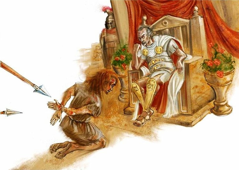 Несмотря на это, вершителю судеб приносят доказательства подстрекательства со стороны Иешуа. Эти речи растолковали как проповеди, направленные против власти римского кесаря. Пилат пытается все-таки спасти смертника и подсказывает тому, что говорить, дабы скрыть факт подстрекательства. Арестованный не слушает советчика, говорит правду. Тогда тот решает спасти философа, обращается за помощью к первосвященнику Каифу, выпрашивая для Иешуа помилование. Принято решение отпустить Варраввана.