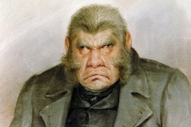 Отсутствие обаяния и непримечательная внешность сильно отличают Собакевича от других представителей знати. Автор подчеркивает, что черты его лица очень грубые и не многогранные, форма головы подобна тыкве. Из-за этого сложно понять, какие эмоции испытывает человек, нарушена мимика. Смотрел мужчина в основном исподлобья, и его взгляд ничего не выражал.