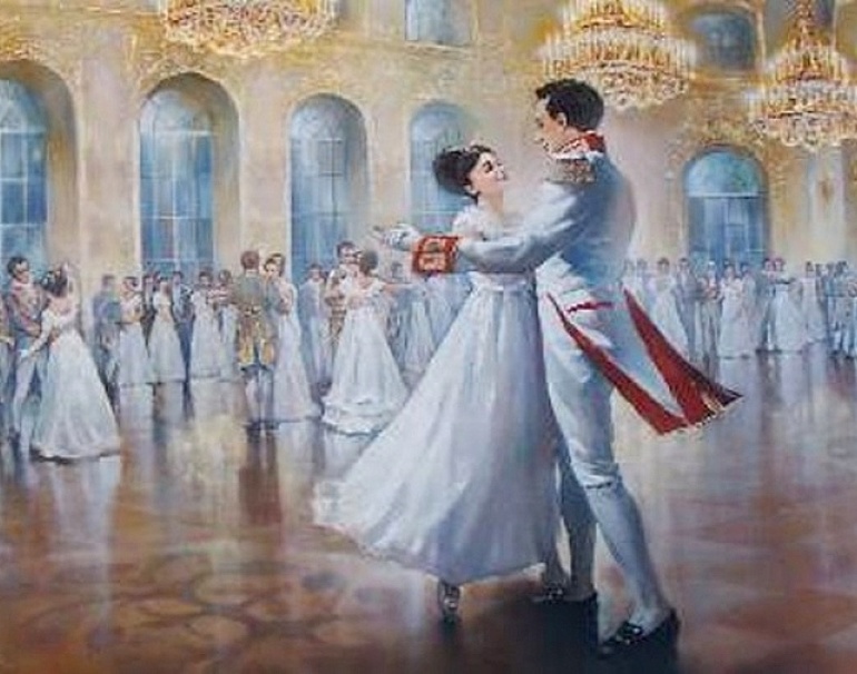Первый бал Наташи состоялся в Петербурге 31 декабря. Автор не скупился на описание роскошных интерьеров, одежду дам и прочих атрибутов банкета. Юная Ростова на балу пытается принять «величественную манеру», которая соответствовала девушке приличного общества.