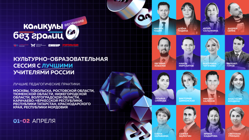 В среду, 1 апреля, в 08:15 по московскому времени стартует дистанционная культурно-образовательная сессия «Весенние Каникулы без границ» – проект «Учительской России» и Тобольского многопрофильного техникума при поддержке ПАО «СИБУР Холдинг». Как отметил главный редактор «Учительской газеты», основатель «Учительской России» Никита Чудин, проект «Каникулы без границ» – это яркий пример успешного взаимодействия образования, бизнеса и власти, который открывает новые возможности для педагогов и учащихся по всей стране.
