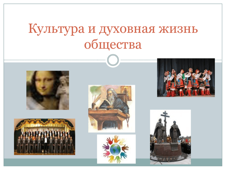 Духовной культурой называется совокупность ценностей и творческой деятельности. В узком смысле она определяет степень воспитанности человека. Отсюда истекают другие понятия — культурное наследие и ценности. Под первым стоит понимать материальные и духовные аспекты, созданные прошлыми поколениями. Они выдержали испытания временем и передались современному миру как нечто почитаемое и ценное.